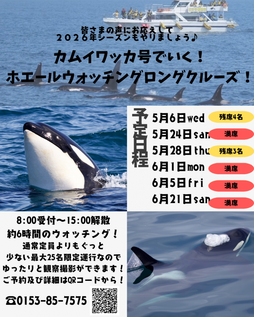 03/31/20262025年ご好評いただきましたホエールウォッチングロングクルーズ!!