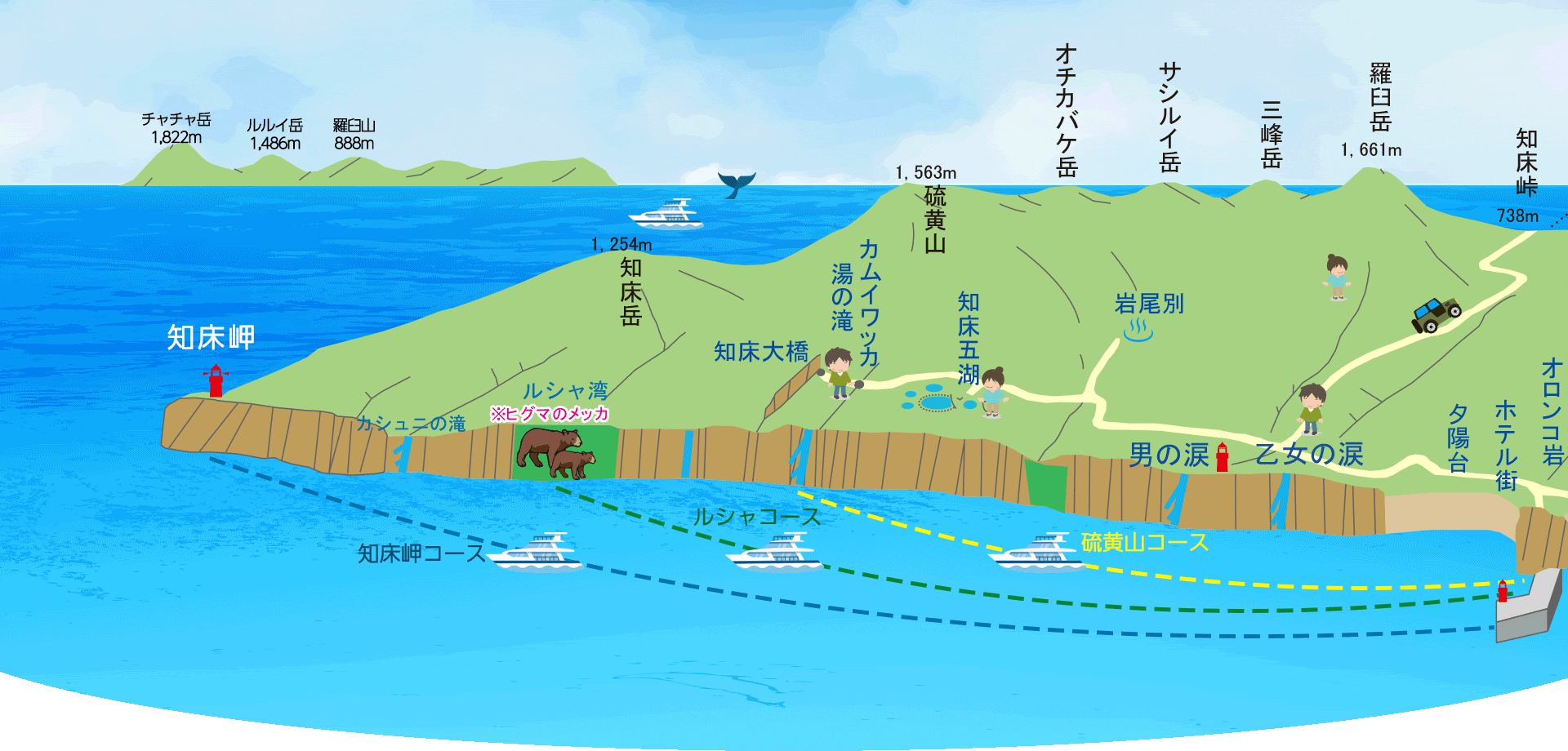 ■ 野生動物などの観察により帰港時間が大幅に遅れる場合もございます。十分に時間的な余裕をお持ちになられてご利用ください。