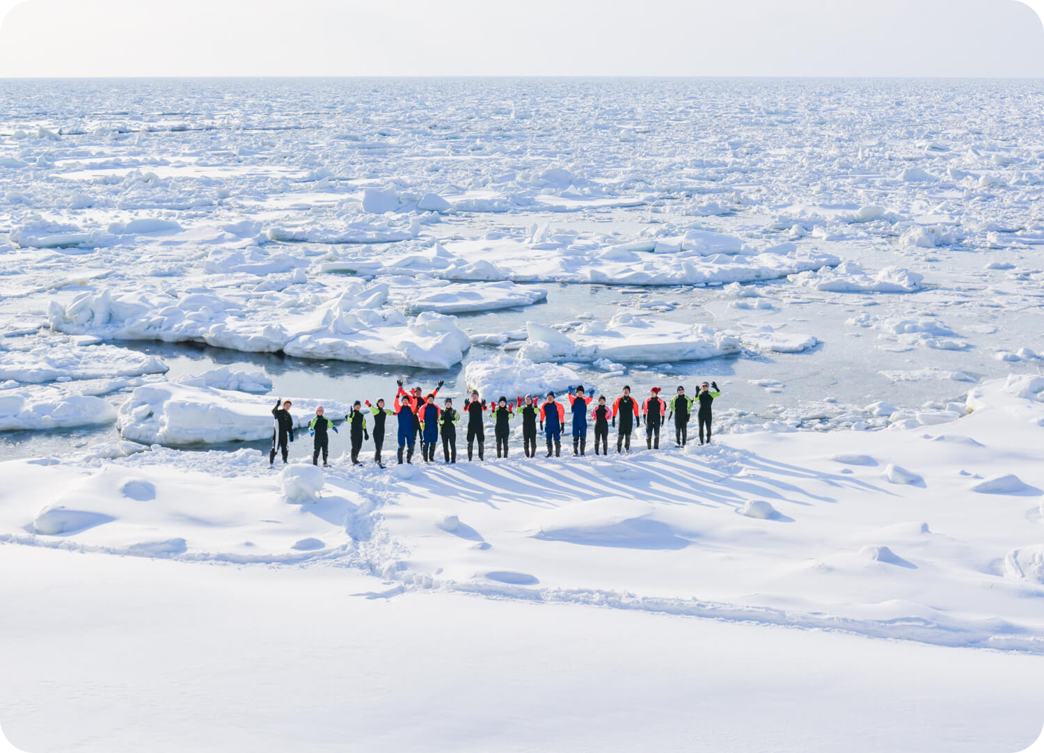 ●氷上での防寒・保温性・浮力を保つために特殊なドライスーツを着用していただきます。